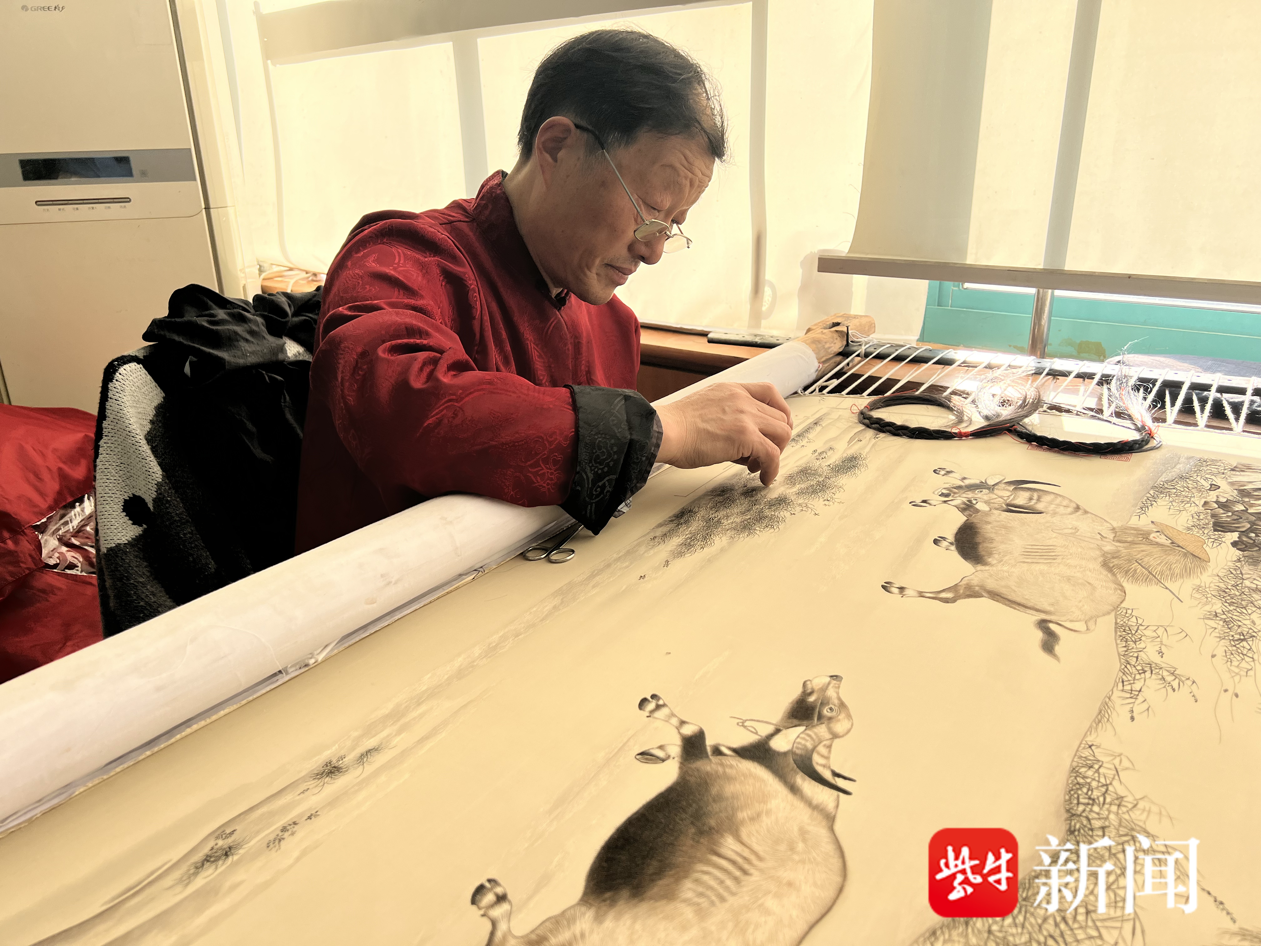 西溪旅游文化景区是东台市的文旅网红打卡地,东台市挑升给东台发绣一个面积近200往日米的展示地。发绣厂工会主席王爱萍正在专心致志发绣,她的《柳塘牧趣》《松下问孺子》《货郎图》《虢国夫东说念主游春图》《仙境神会》等作品获取多项国度级、省级荣誉。王爱萍说,“江苏省总工会以及省市级各机关各部门关于发绣都鼎力赈济,在大众皆心合力长途下,东台发绣一定会愈加芳华鲜亮,成为证明江苏故事的文化柬帖”。