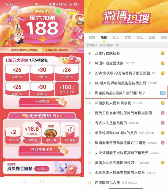 ▲淘宝闪购因优惠登上热搜。